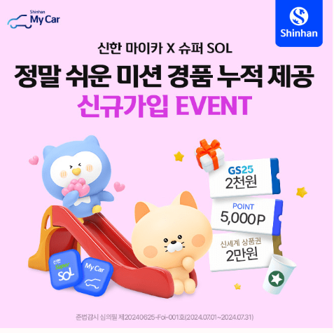 7월 마이카x슈퍼SOL EVENT1 페이지 하단의 [신한 슈퍼SOL 설치하기] 버튼을 통해 슈퍼SOL 신규 가입 시 마이신한포인트 5천P 즉시 적립! OOO를 통해 슈퍼SOL 설치 및 가입이 진행되어야 경품 대상에 포함이 돼요! OOO안에 들어갈 단어는 무엇일까요? (힌트: ㅂㄹㅋ)